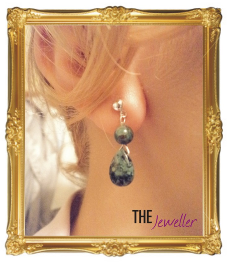Cerceii KAMBABA JASPER DROPS sunt placaţi cu argint şi sunt formaţi din două piese din sortimentul de jasp numit kambaba jasper: brioletă faţetată de 8 x 12 mm şi sferă de 6 mm. Cerceii măsoară 2.70 cm în lungime, se închid cu şurub şi pot completa foarte bine o ţinută de birou.
